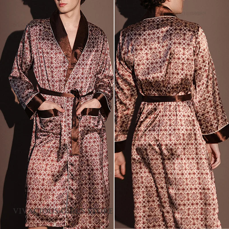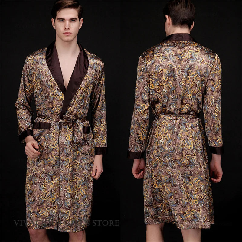 Un peignoir en satin au motif luxueux, pour un style affirmé.